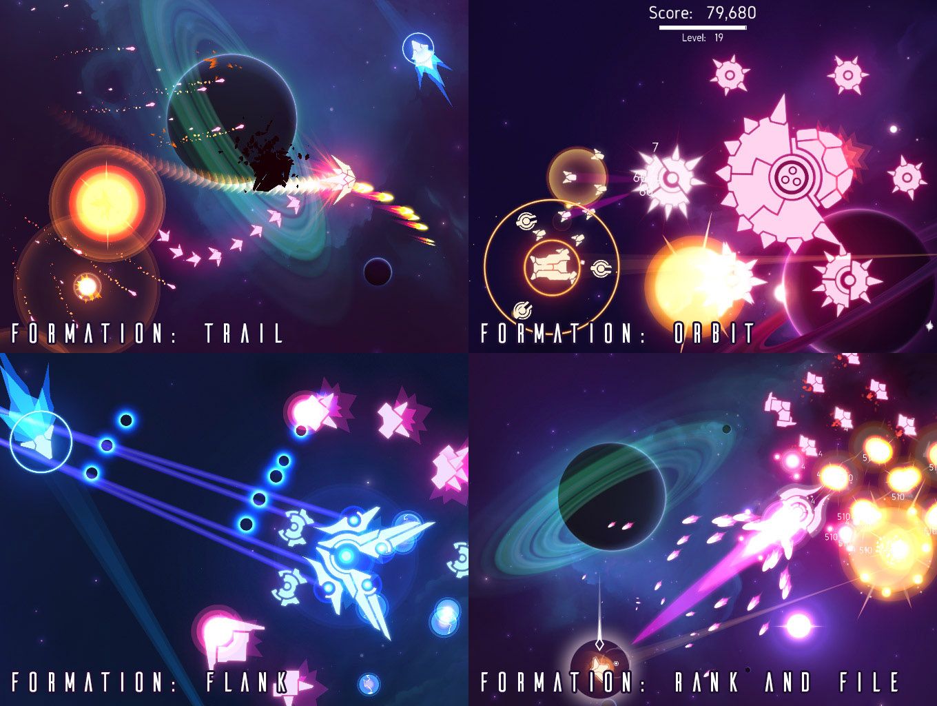 - Enemy Formations: Foes may now appear in formation with each other: Rank and File, Orbit, Flank, V, Trail, Fractal, and Support Formations