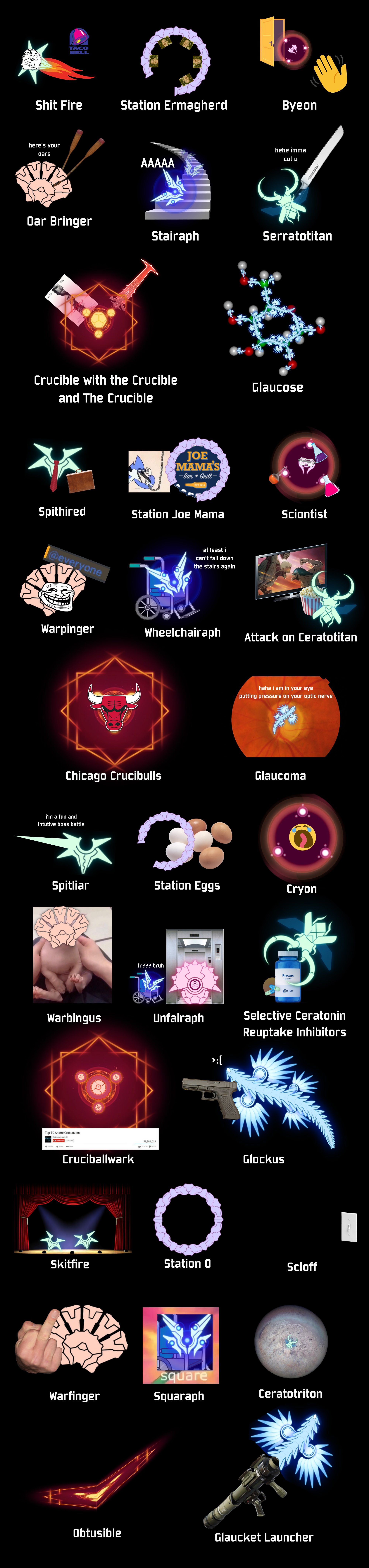 By KinishinaREDFIST by KinishinaThe OMEGALUL Black Hole by JohnSolarisBy John SolarisBAAHHHHSeries by PotatomasterNova_Drift_Balance.jpgNova PoneThis one probably won't make sense to you, but it makes me happy. By NowOnTestThere was no way to stop ZedManul from creating this, so this exists, now.Praise the Infinitrain! Praaaaaaise! By LurkHydra Chargin' by GreasyMonkeyBillaxethrower - Barrage Railgun goes BRRRRRREvertone - Offscreen HivesEvertone - SlipstreamageddonIcicle - Warp, Tempest Break and Emergency Systemsn+ - Body Gear: CatgirlVogelspin - The original "Fleshy Ships"ZEAA0N - Fleshy Viper IZEAA0N - Fleshy Viper IIn+ - Fleshy BatterySchrödinger's card - MinedriftHexaCryonic - Traingetti and Meatballwarks