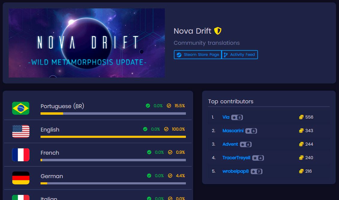 I'm excited to announce that we're working with Localizor to help translate Nova Drift to your many Earth languages!