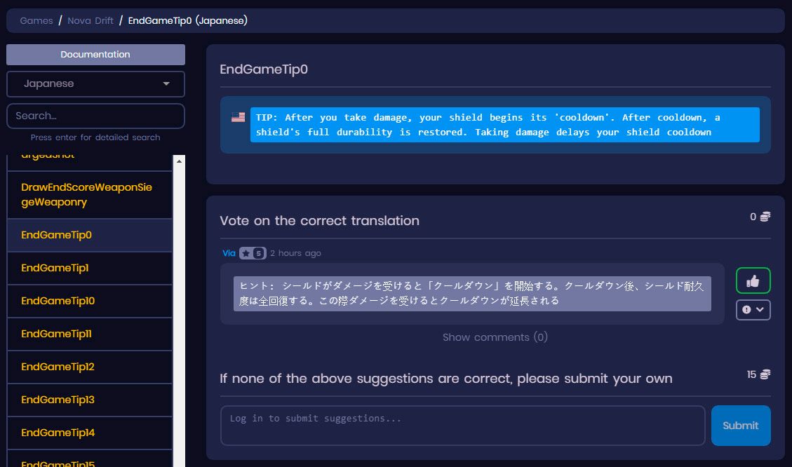 - Vote on correct suggestions. You get 1 coin per vote. If no suggestions are available, simply translate and submit your own.