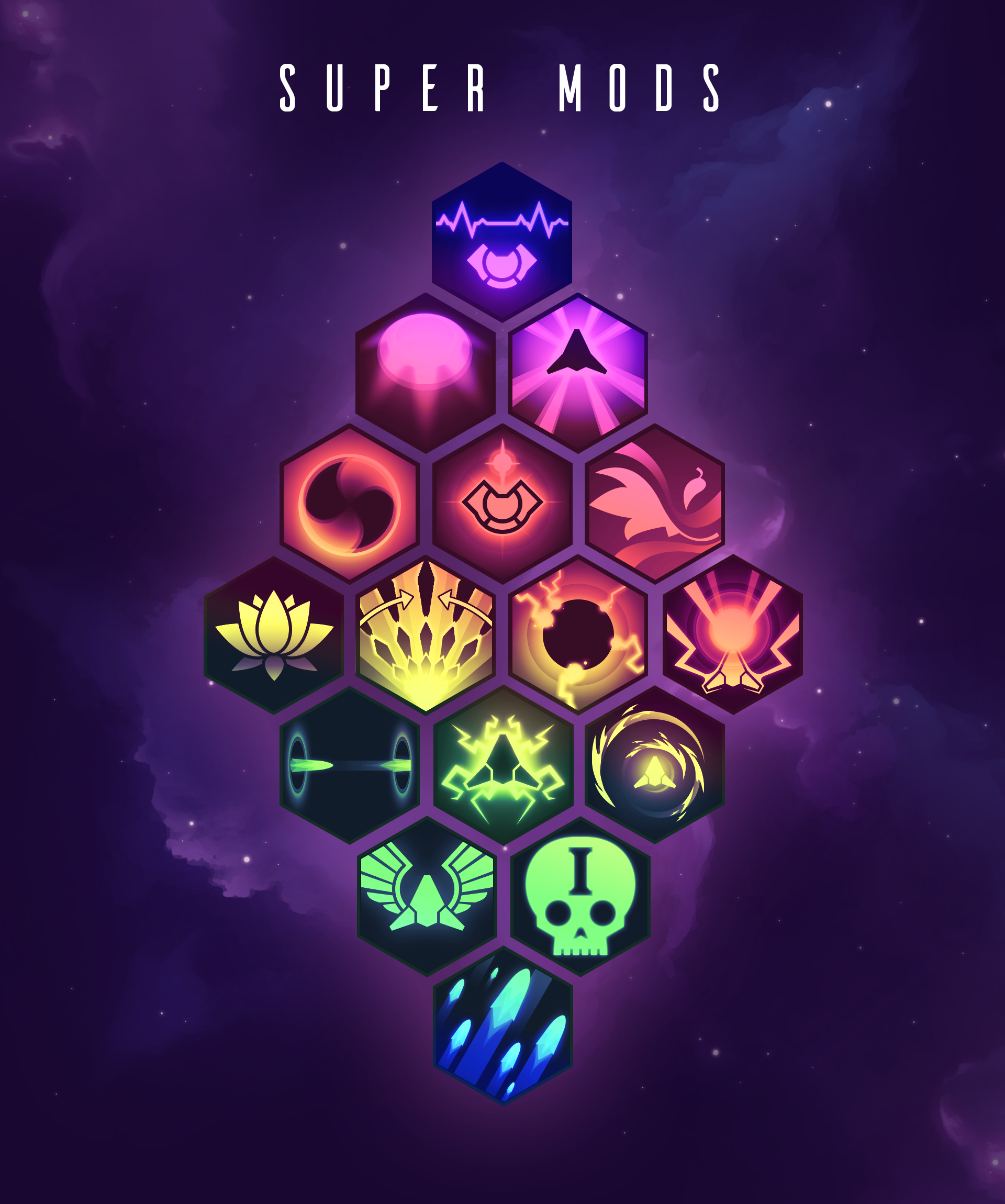 This update brings new powers in the form of 5 additional Super Mods. Once unlocked, when you upgrade, Super mods are added to your pool of mod choices if their unique special requirements are met. They often grant devastating abilities at a great price, and sometimes alter the rules of the game.