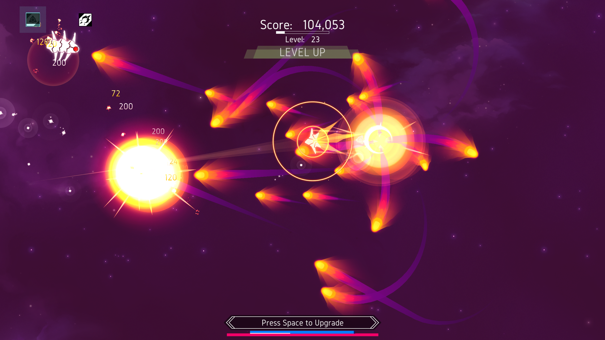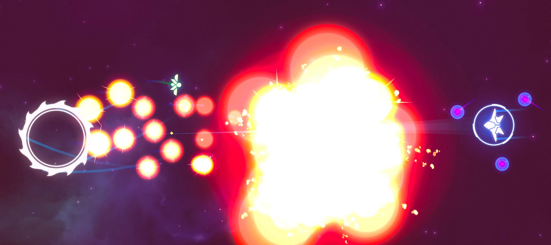 With consoles on the way, I've continued working on projectile optimization. Projectile calculations are by far the most demanding aspect of Nova Drift. I'm currently testing a new settings feature that lets you tell the game how aggressively you want the game to optimize projectiles by squarshing them together. If that setting is on, it does this by combining excessive player projectiles into fewer projectiles that have the combined damage and effectiveness. This optimization happens when a lot of projectiles are created at once, or when new projectiles are created when a whole lot already exist. This is designed to have as little impact on performance as possible. For example, powers like "Corrosion" that care about how many times your projectiles hit won't be adversely affected... if two projectiles were clumped together, it will simply deal twice the damage and apply twice the stacks of corrosion.