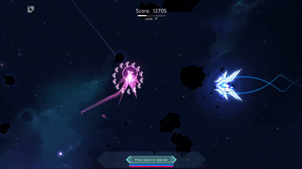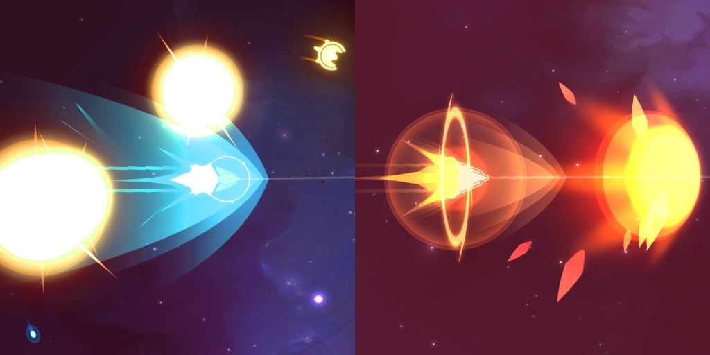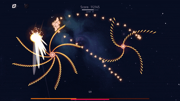 Originally, like most SHMUPs and arcade games, you'd be heavily damaged for crashing into enemies, but I made it do sizable damage to them, too. Players seemed to enjoy slamming into enemies so much that I started creating options to build into that play strategy. Now, it's a staple of the game and there are builds which can almost completely mitigate the damage, proliferate or splash the collision, and alternate weapon and crash damage for boosts, guerrilla style. There is even a "melee" option in dealing heavy burn damage with the ship's thrusters. This has been a fun discovery, because it has allowed me another avenue to build with traditional RPG mechanics.
