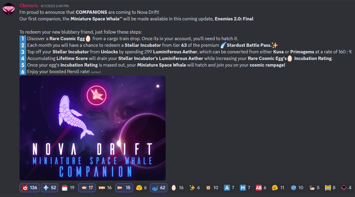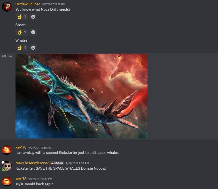 Ever since Nova Drift's 2017 Kickstarter campaign concluded and people started migrating into the game's Discord server, players have been asking for a Space Whale.