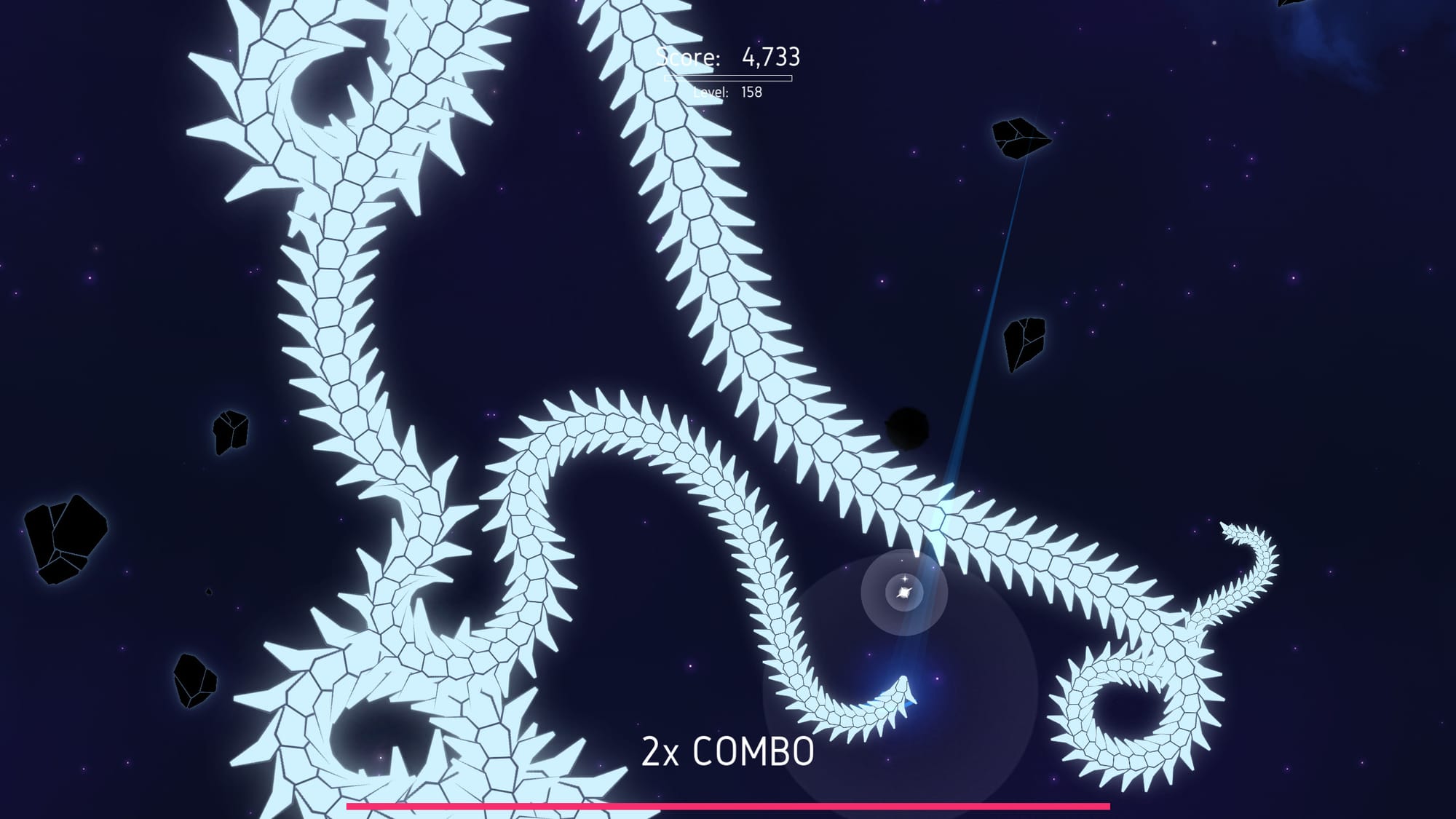 SERPENTINE DRIFT – Begin your journey as a Leviathan and munch orbs to increase your size. Protect your head, and don't chomp your own tail! Your only threats are cosmic hazards and yourself.
