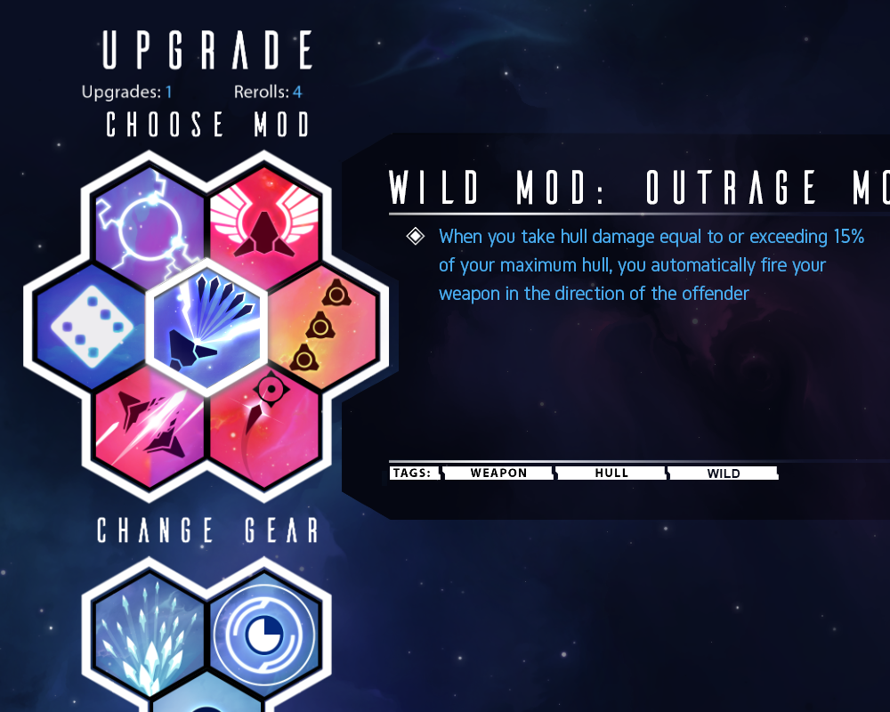 - Outrage Module: When you take hull damage equal to or exceeding 15% of your maximum hull, you automatically fire your weapon in the direction of the offender